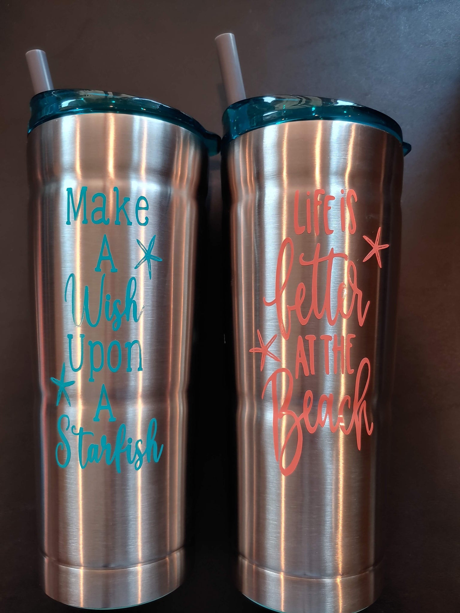 If you would like any of the pictured tumblers above, such as Bubba or Yeti, please message me directly to order by going to our Contact page!