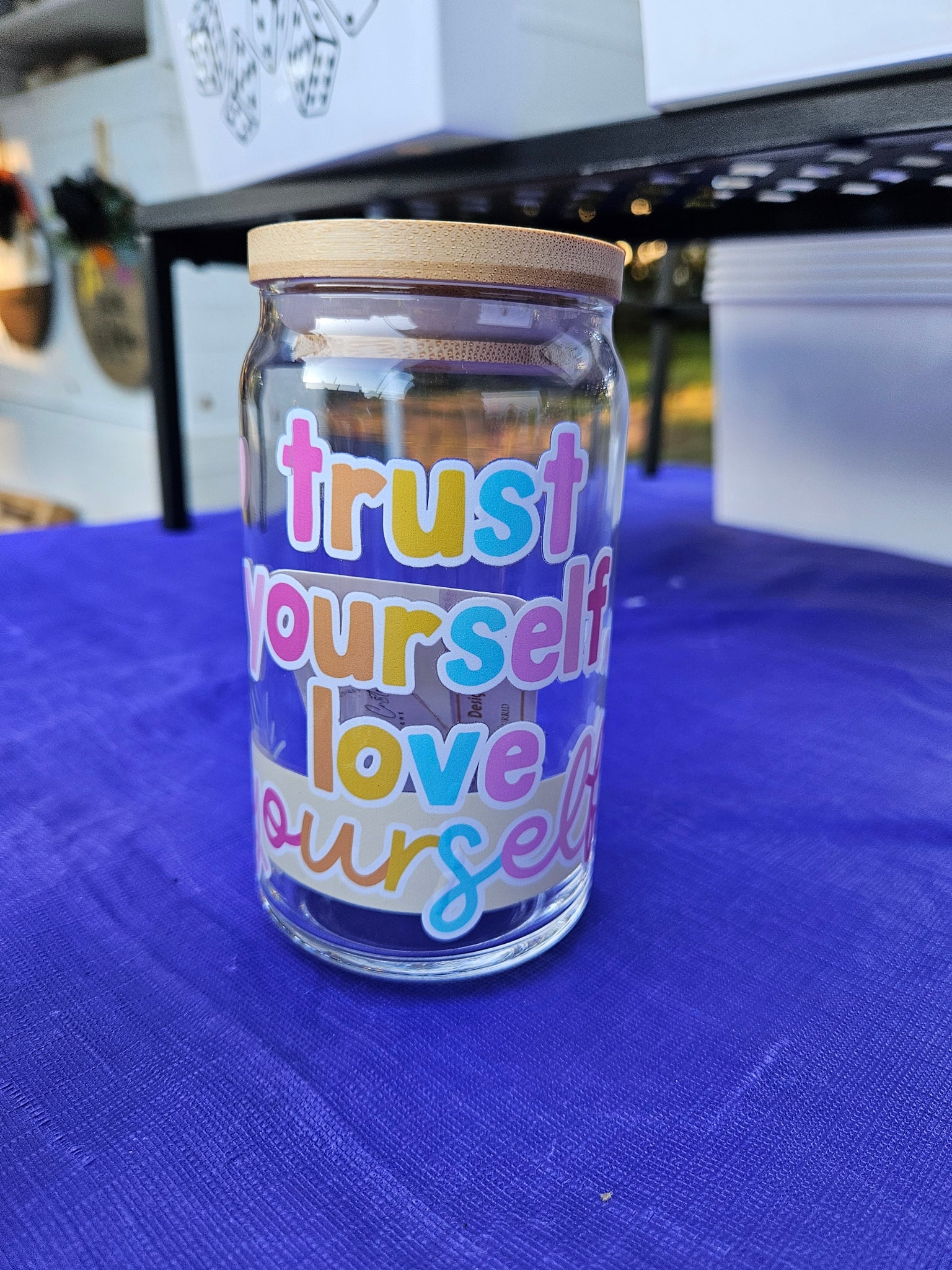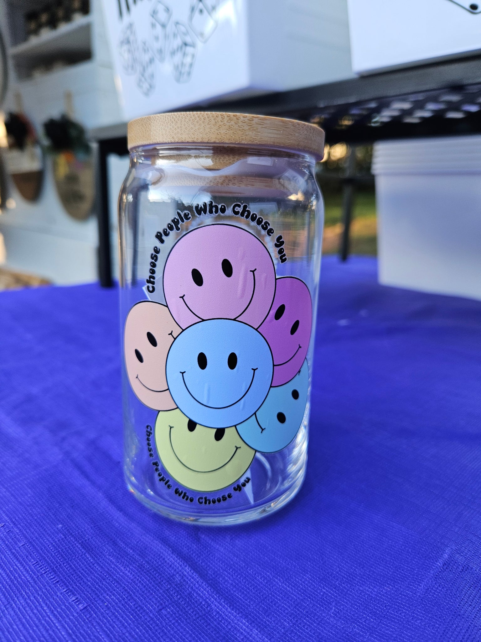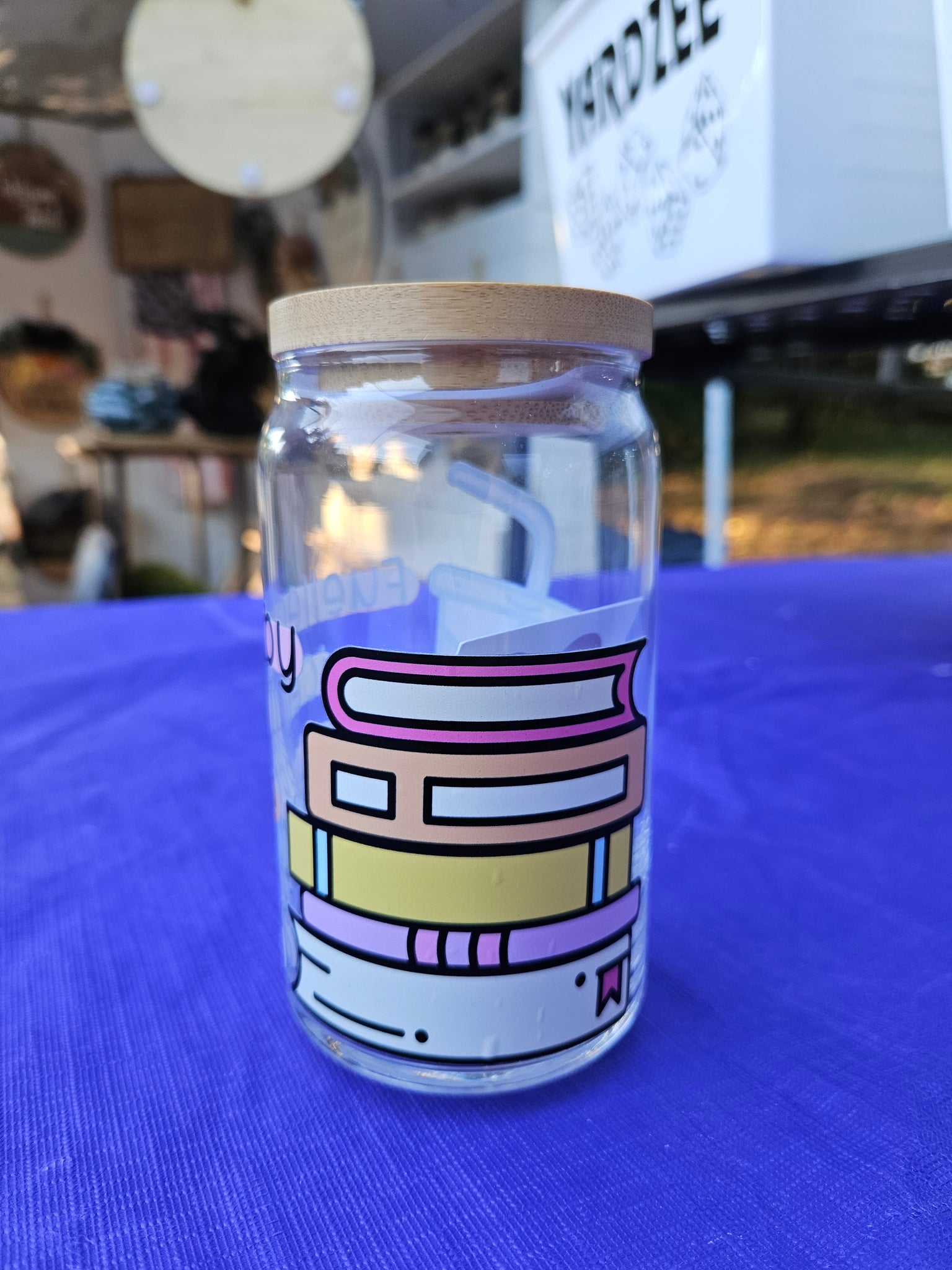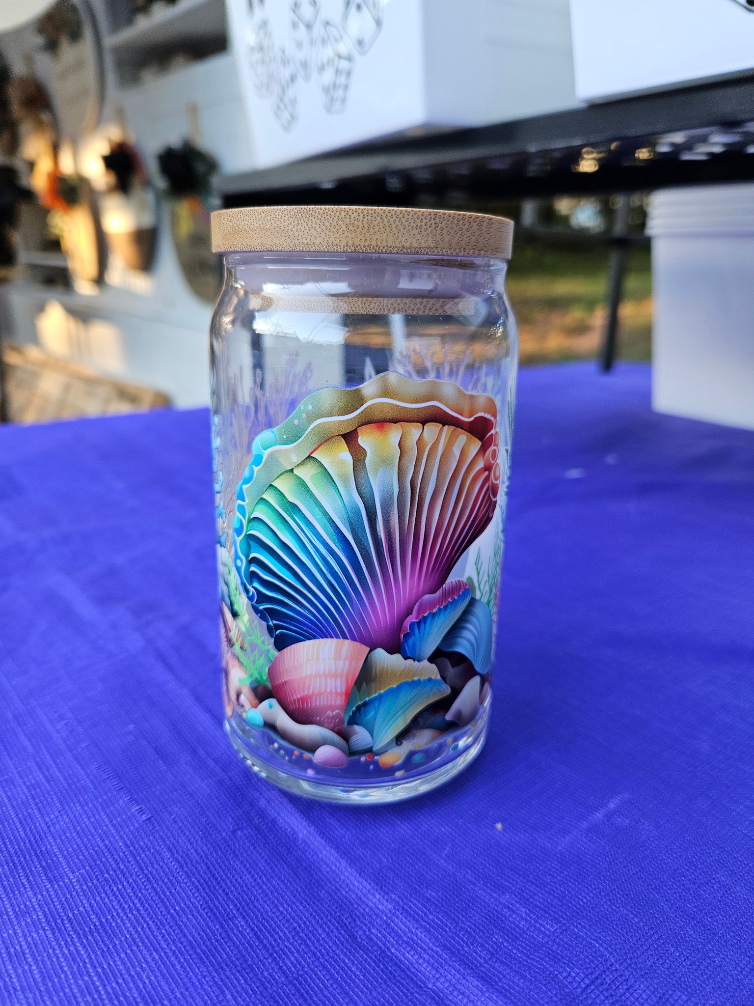 Glass Beer Can Cups, with bamboo lids and a glass straw. 16 ounces per glass. $20 each or buy any 2 for $35!