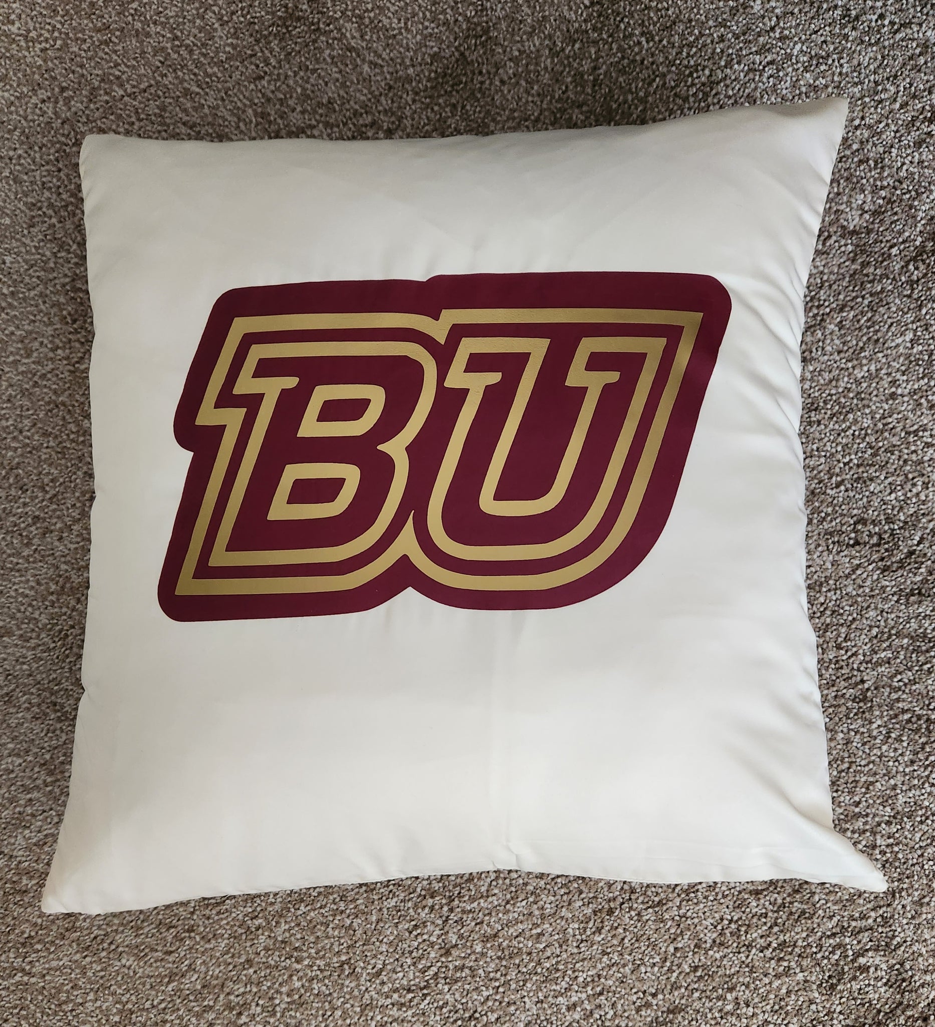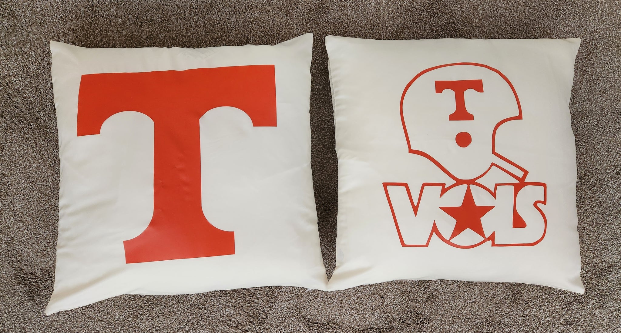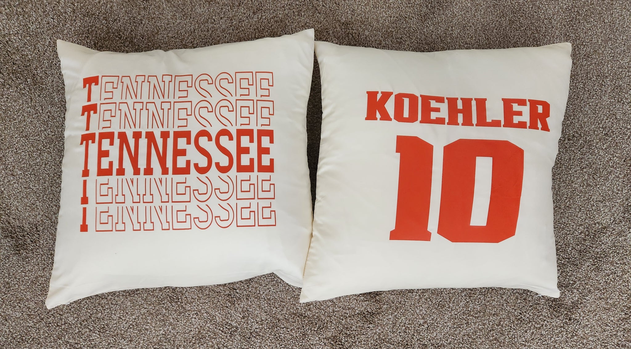 Pillows. All pillows come with the cover and insert. The size of the pillows are 18x18, however I can order smaller sizes as well. The pillow covers come in white or natural, which is a light tan color. Pillow designs are completely customizable, but please try to keep each pillow to 2 or less colors.